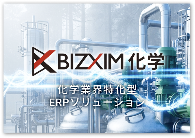 「BIZXIM化学」は、配合管理や化学品の生産モデルに対応した原価計算機能をはじめとする化学製造業界特有の業務を管理するWeb型統合基幹システムです。