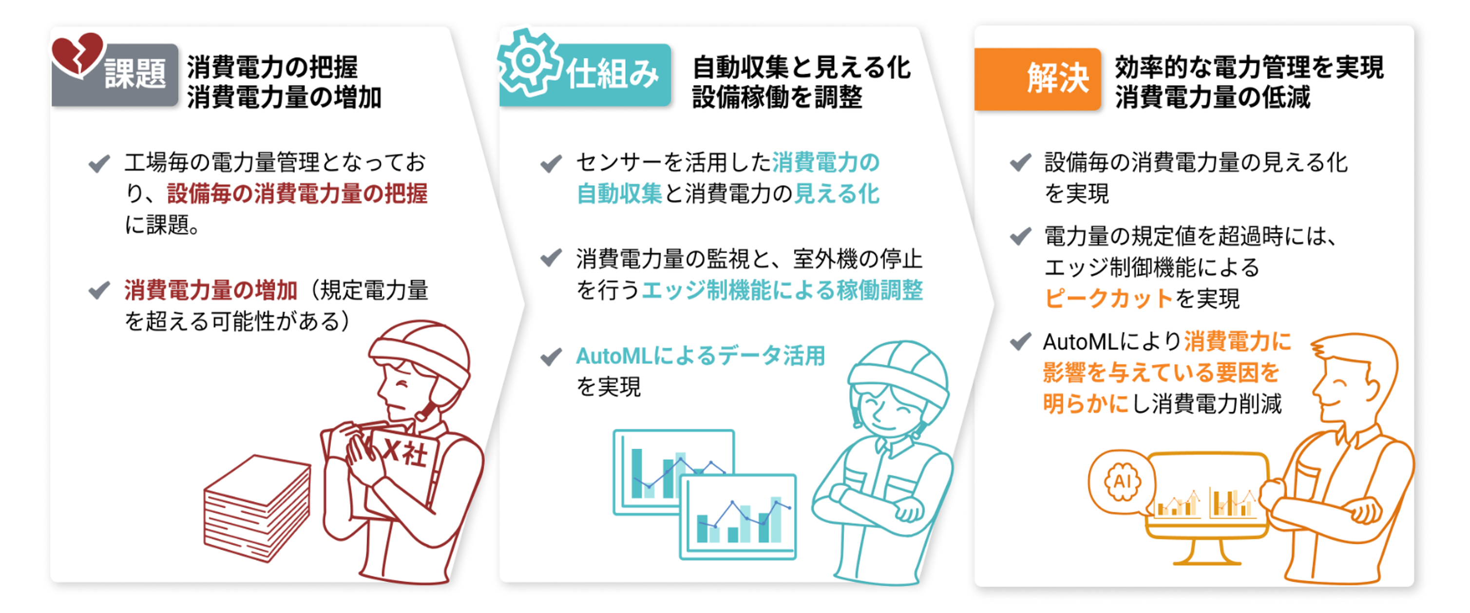消費電力量を自動計測し、見える化を実現。